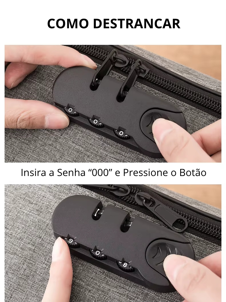 🔐 Fecho reforçado e zíper seguro