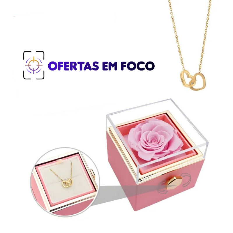 Colar DuoHeart com Rosa Eterna – Presente Romântico com Caixa Rotativa Luxo